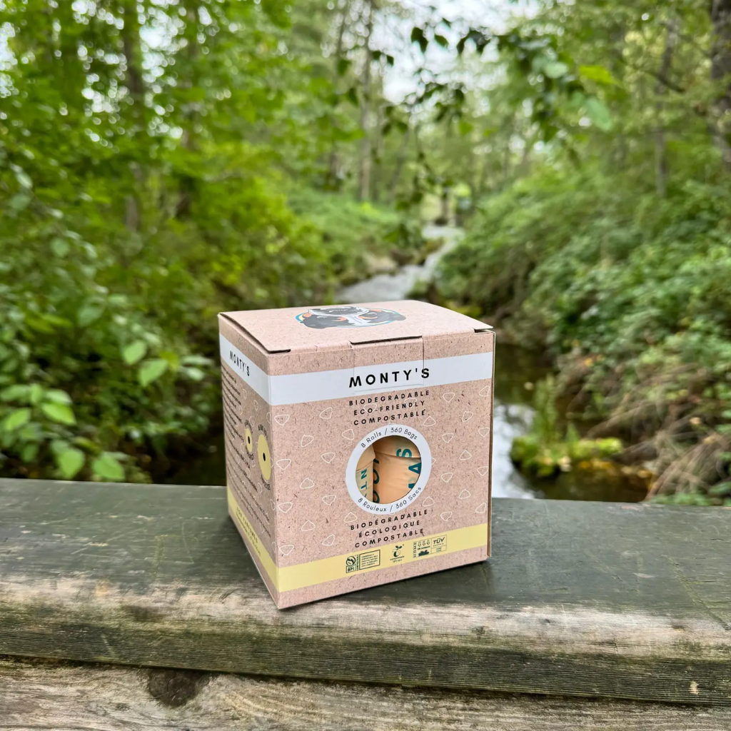 Designed for convenience and sustainability, these triple rolls provide 45 bags per roll. Made from cornstarch and renewable bio-based materials (PLA + PBAT), these bags biodegrade in 3-6 months, unlike conventional plastic bags that take centuries to decompose. Monty's bags leave behind zero toxins, making them a must-try for any pet owner.